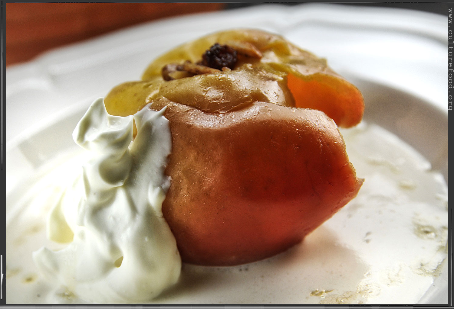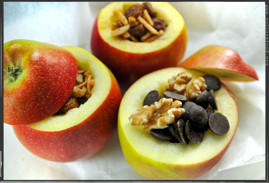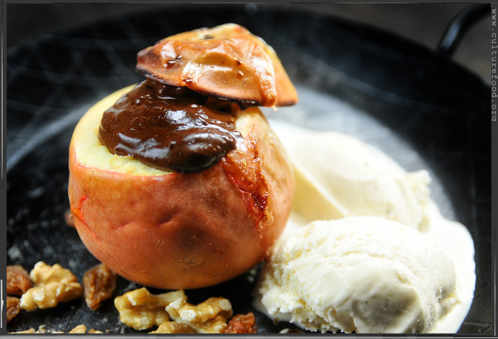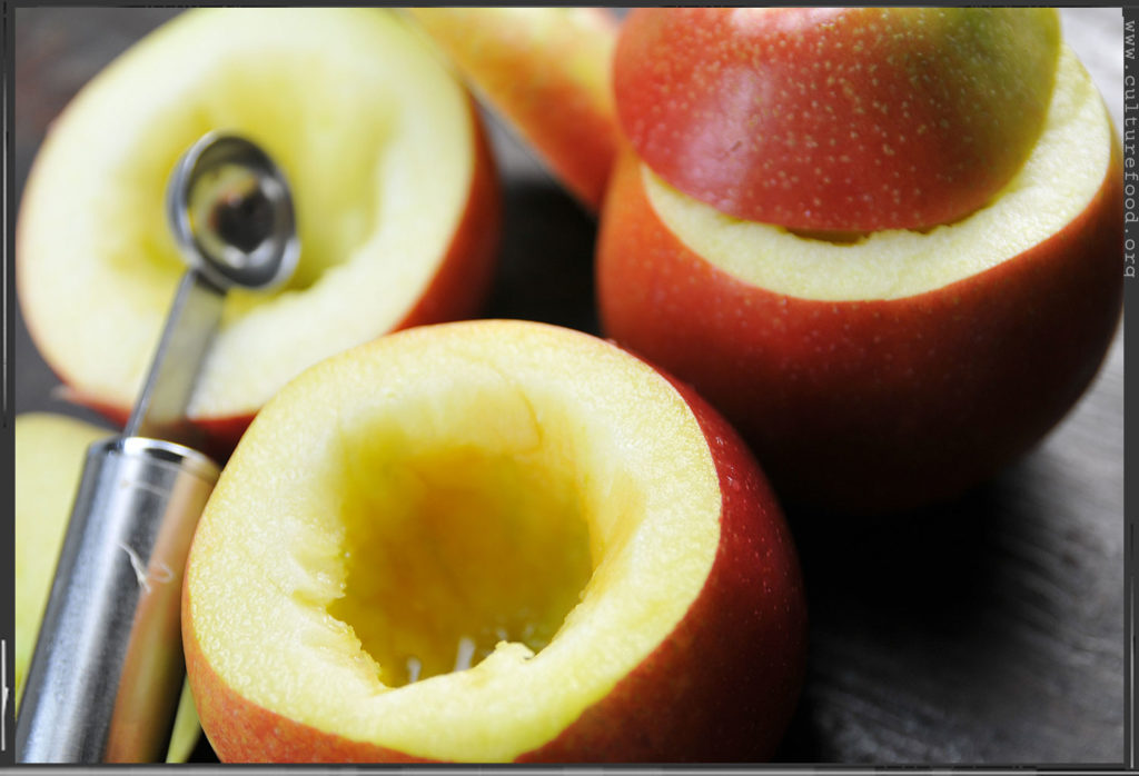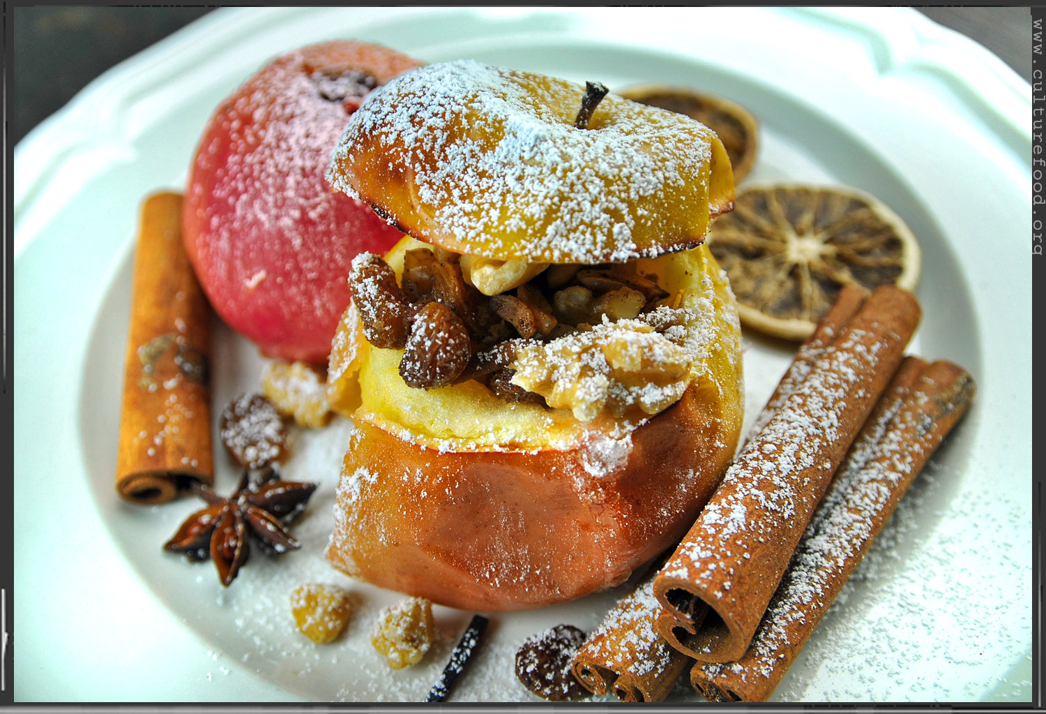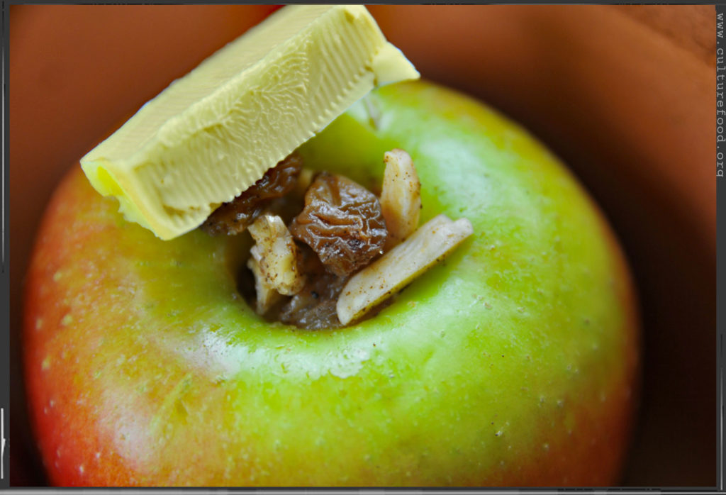 Nicht jede Sorte eignet sich, denn die Äpfel müssen beim Garen ihre Form behalten. Für die Zubereitung eignen sich leicht säurebetonte alte Apfelsorten. Das Kerngehäuse wird ausgestochen und ein Deckel abgeschnitten. Danach wird der Apfel nach Lust und Laune gefüllt: Mit Nüssen, Rosinen, Schokolade, Nougatcrème, Marzipan, getrockneten Früchten oder zerbröselten Schoko-Cookies. Es gibt auch Rezepte mit Erdnussbutter, Marshmellows, Schinken, Käse, Blutwurst, Gänseleber… die Rezepturen für diesen Klassiker variieren stark, jede Familie hat ihr eigenes kleines Geheimnis. Gebacken werden können die Äpfel in einer Auflaufform im Ofen, am Kamin oder im Römertopf.