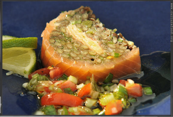 Linsen und Räucherlachs-Terrine