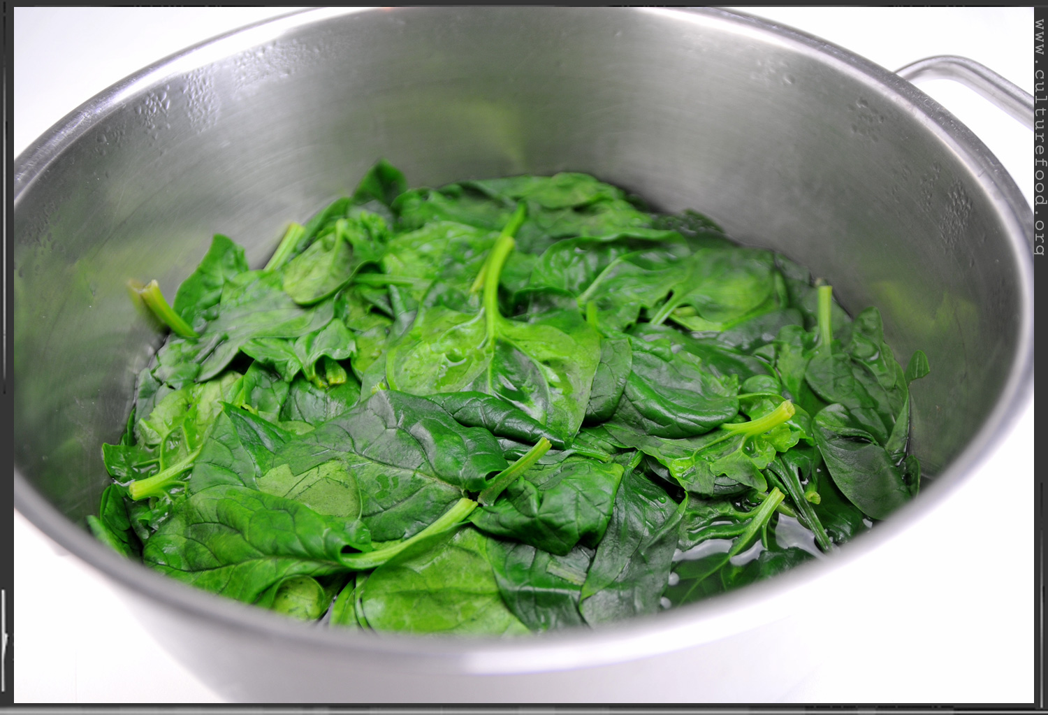 - 400 g junger Freilandspinat (März – Juni) / alternativ tiefgekühlter Blattspinat ohne Zusätze