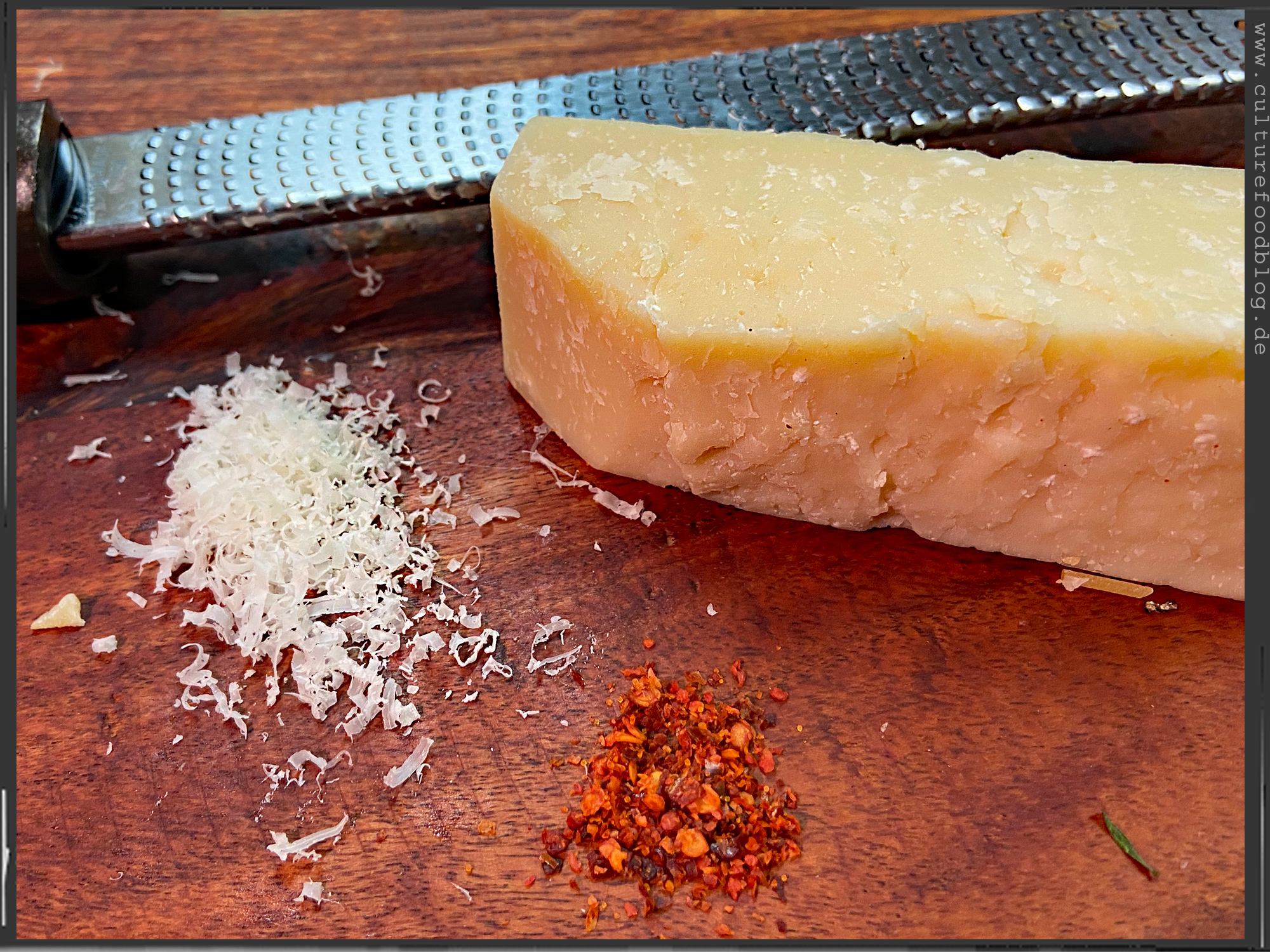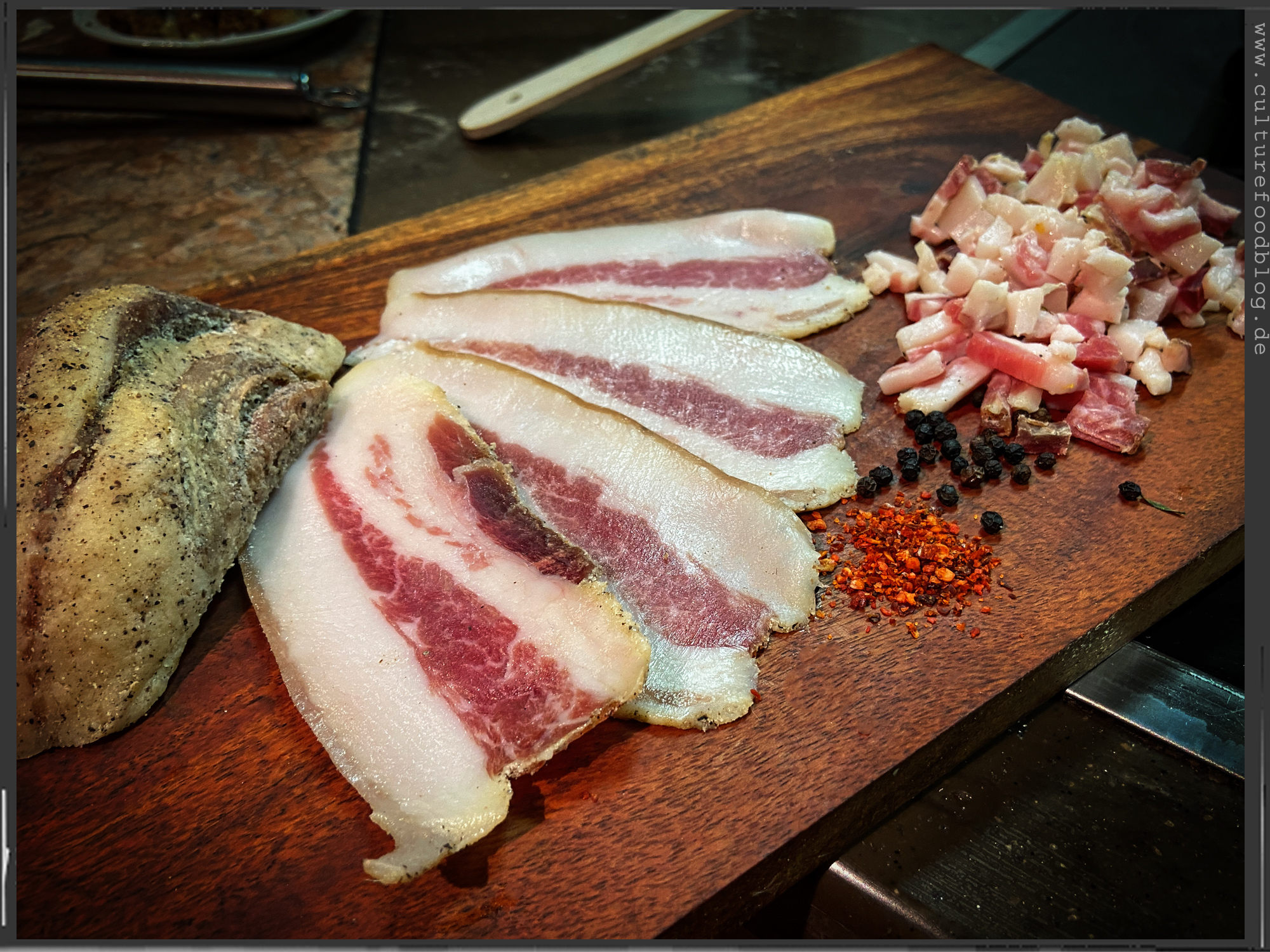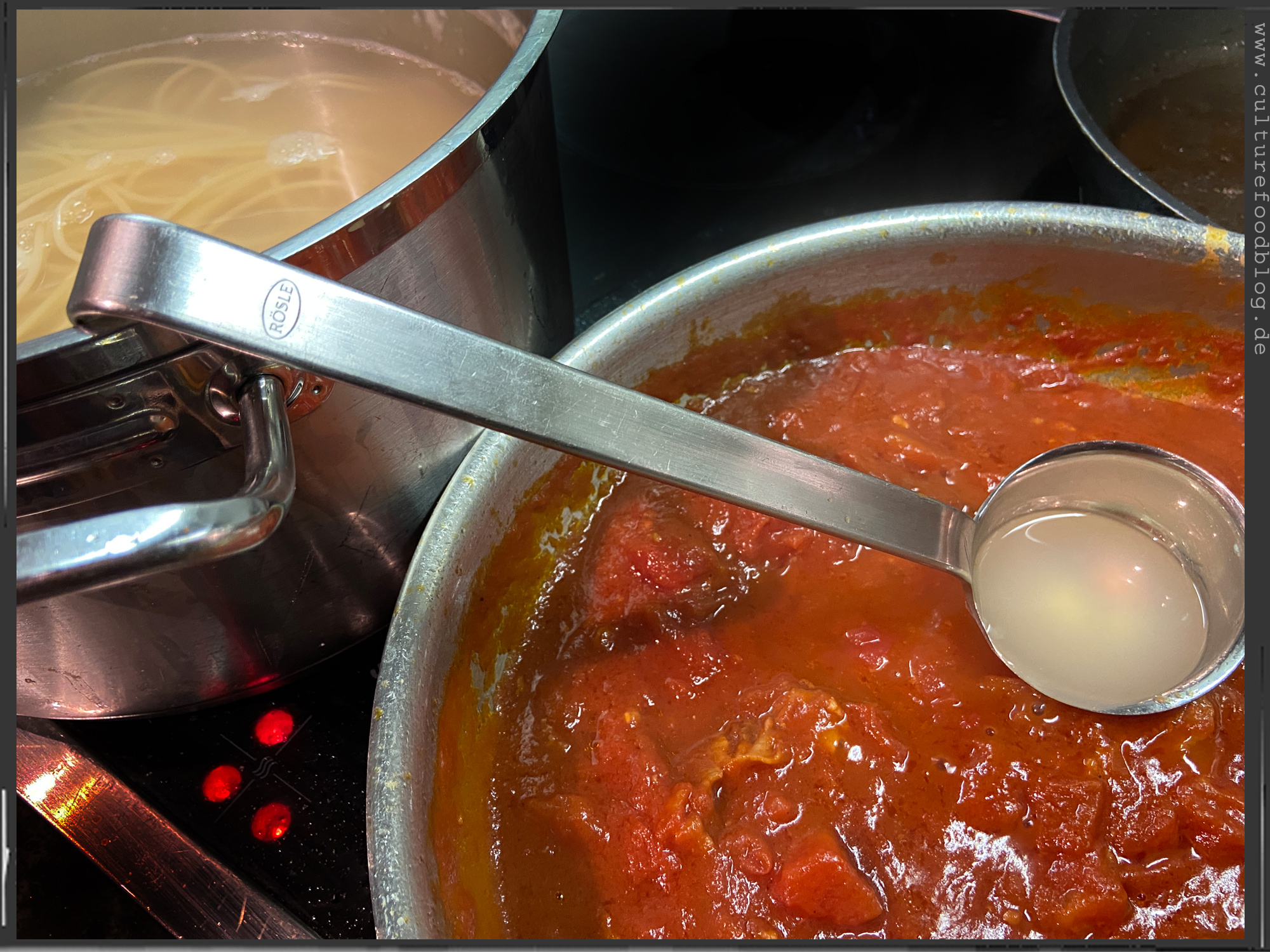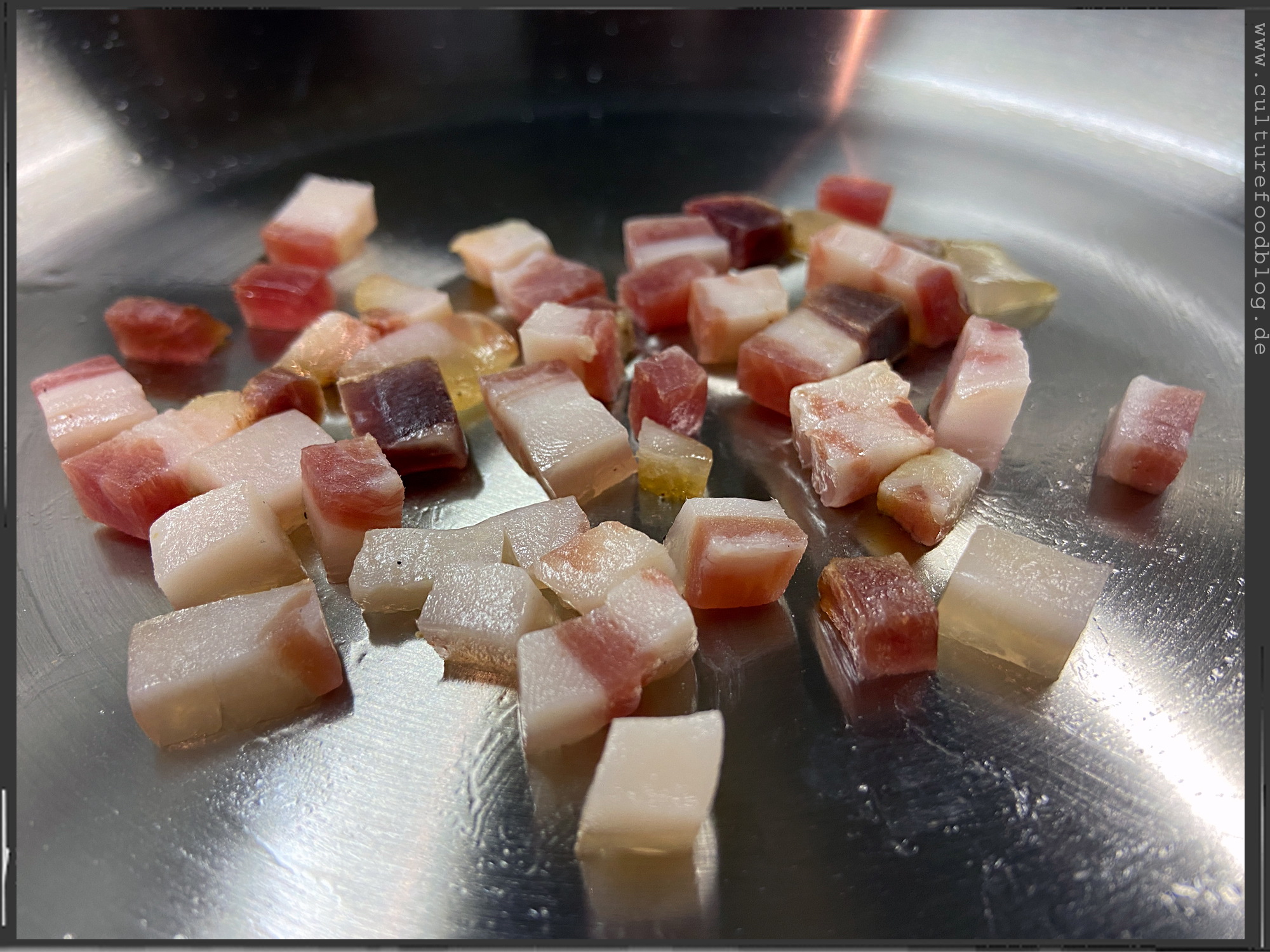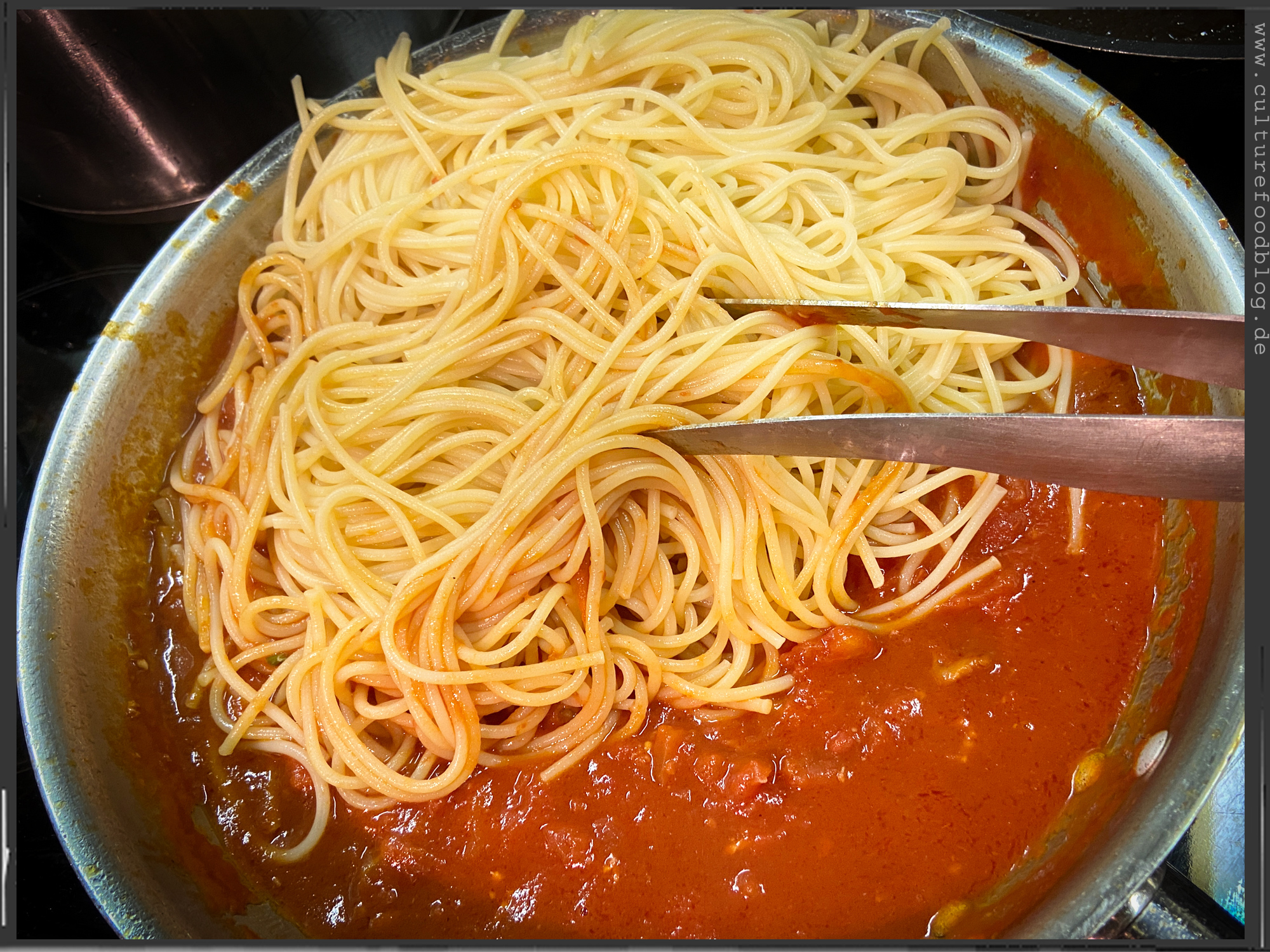 Spaghetti  |  Guanciale  |  Tomatenwürfel (Polpa Pezzi)  |  Tomatensoße (Passata)  |  Pecorino